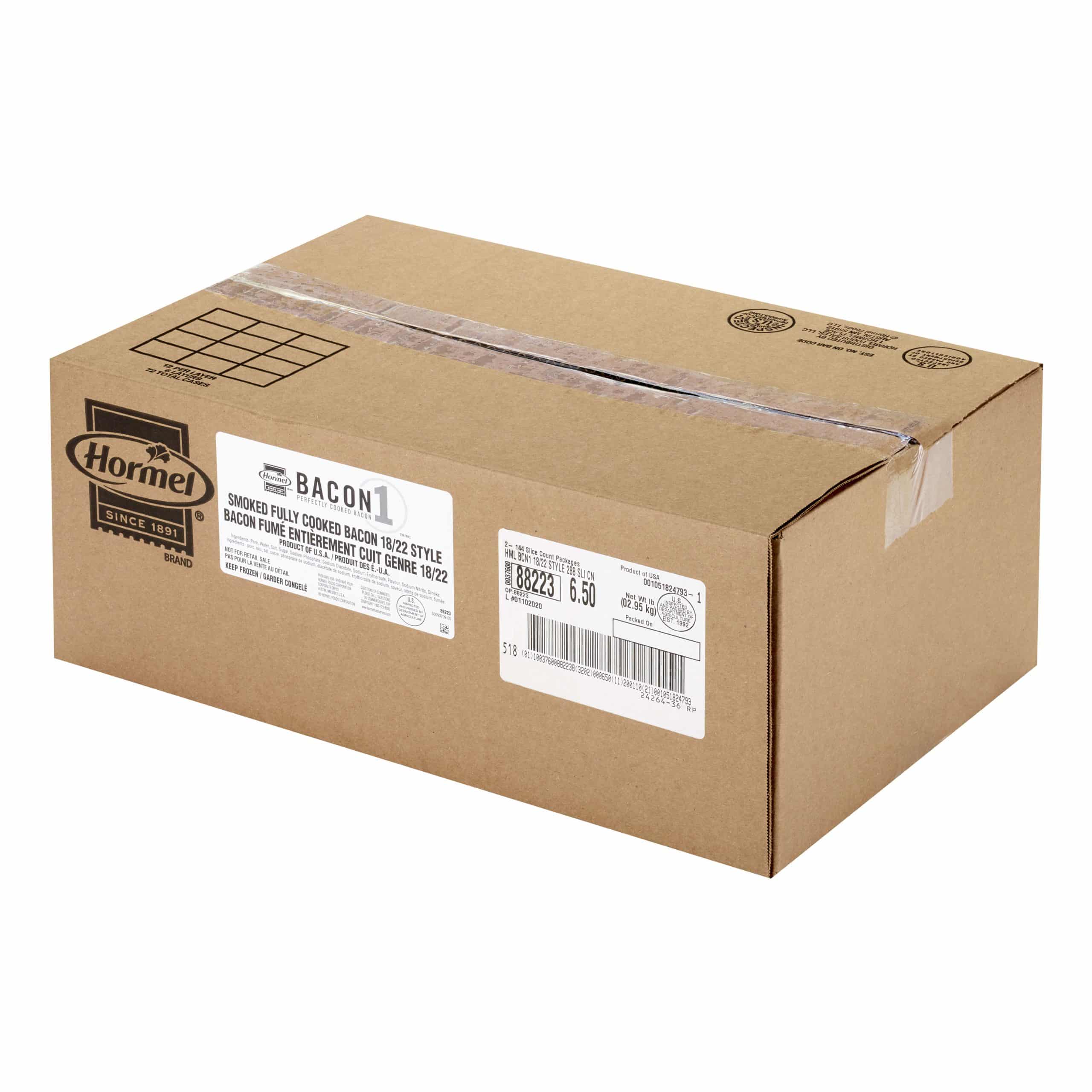 HORMEL® BACON 1TM Bacon parfaitement cuit, tranches fines, 288 tranches