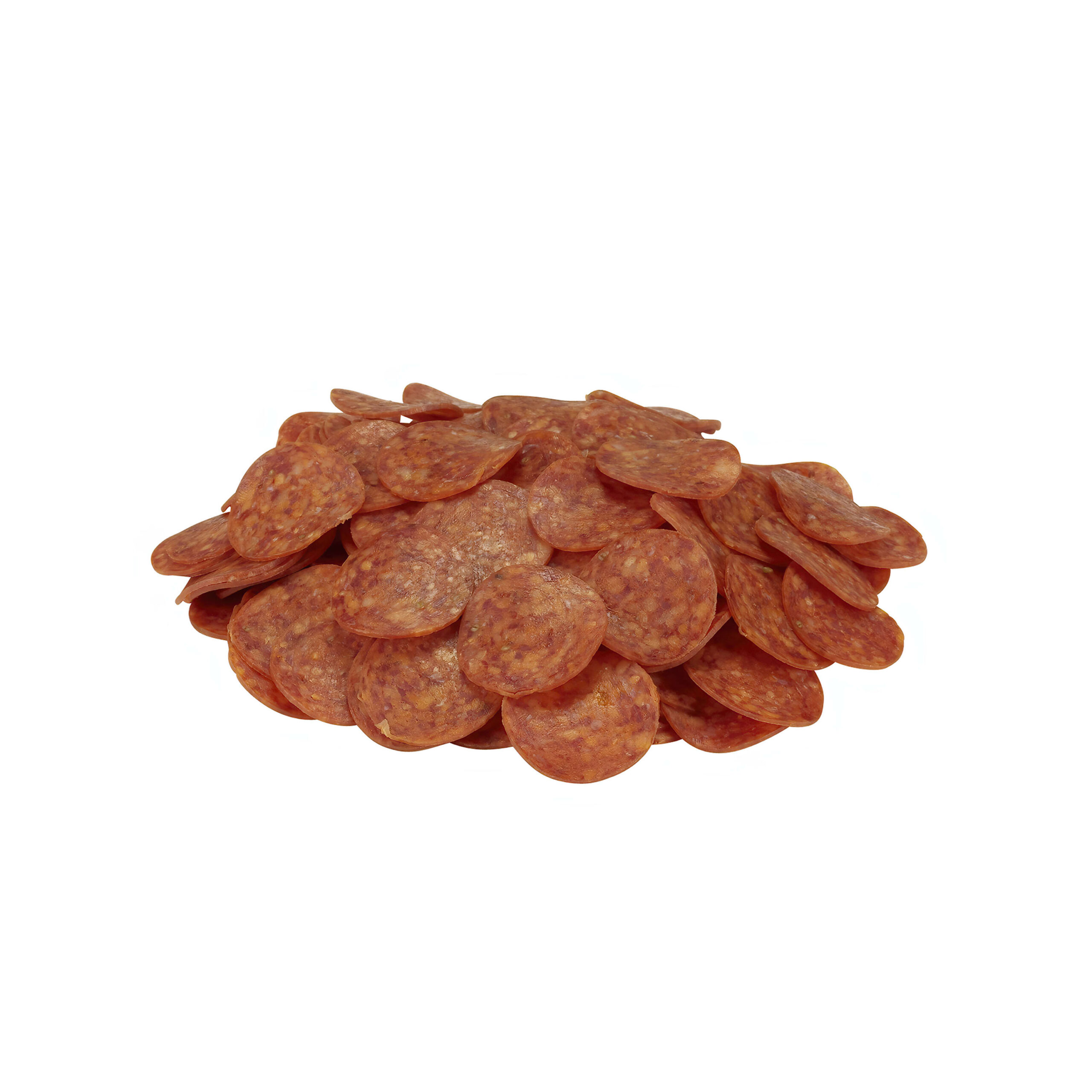 This sliced pepperoni is made from select pork and beef cuts. It has a classic flavor with a balance of sweet, savory, and spice. It is designed to cup and char like old fashioned pepperoni.
