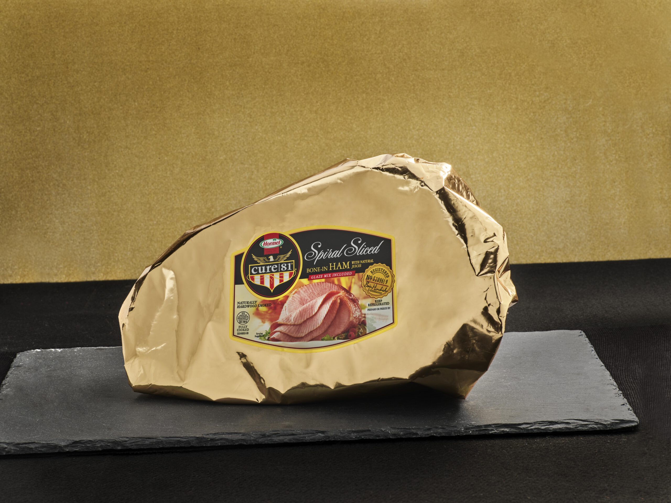 Each CURE 81™ Ham has the shank removed and is meticulously trimmed for a lean consistent product. CURE 81™ Spiral Ham is spiral sliced for easy carving. Glaze packet included."