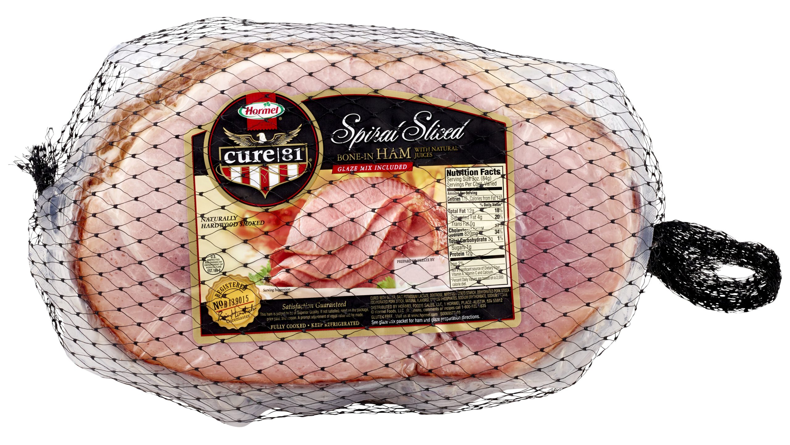 Each CURE 81™ Ham has the shank removed and is meticulously trimmed for a lean consistent product. CURE 81™ Spiral Ham is spiral sliced for easy carving. Glaze packet included.