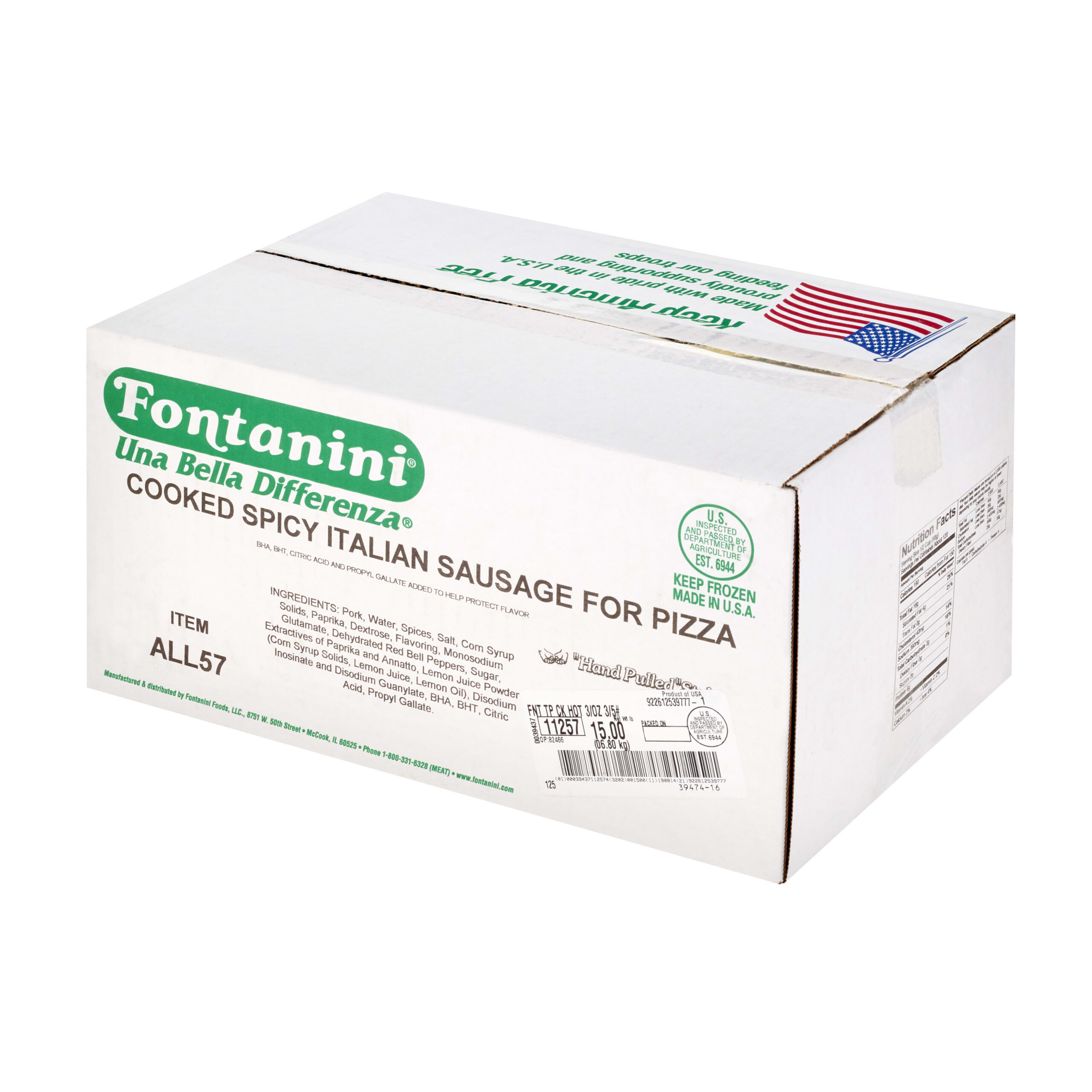 FONTANINI® Spicy Italian Sausage Topping, Chunk, 3/2.27 kg